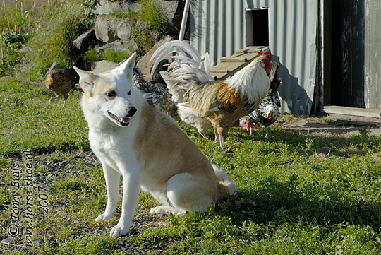 Tritla en IJslandse haan met kippen